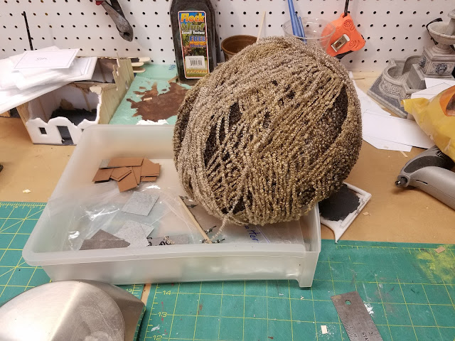 We came up with a new method for our hedgerows. In the past we glued individual chunks of foliage a piece at a time. Easily the longest part of the build.